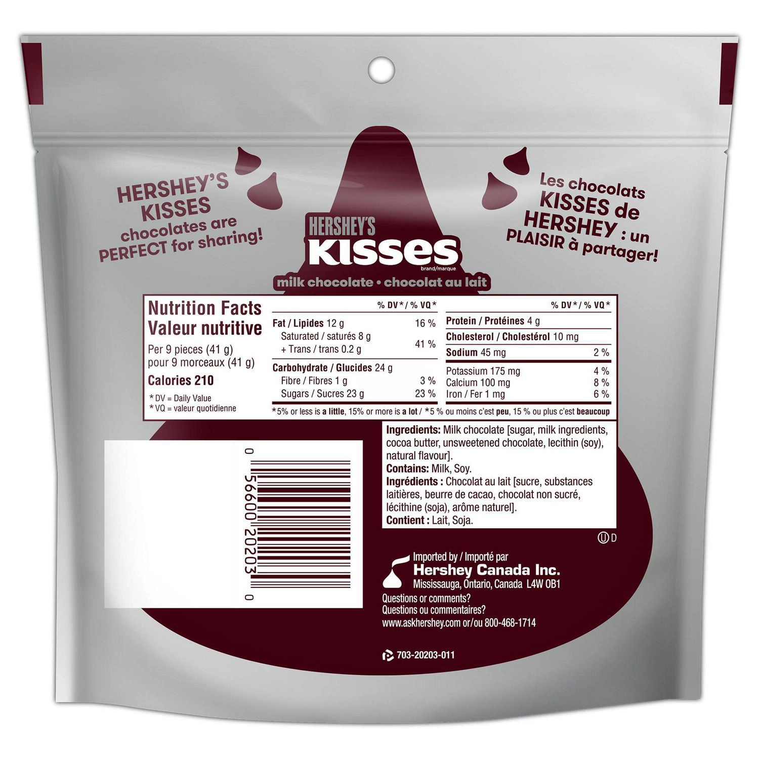 - One 200g bag of HERSHEY’S KISSES Milk Chocolates
