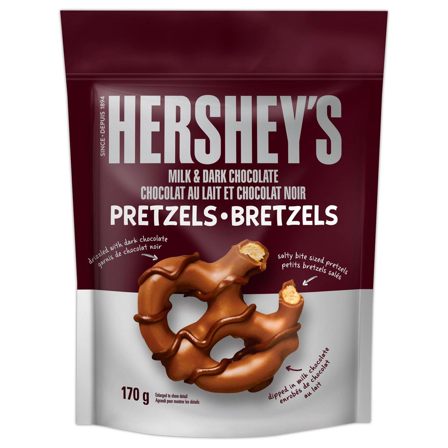 Enjoy the perfect blend of salty, sweet, and crunchy flavors with Hershey’s Milk & Dark Chocolate Pretzels. Order yours today!