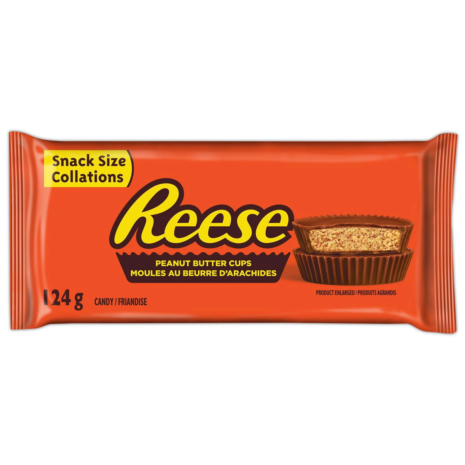 Experience the classic taste of Reese’s Peanut Butter Cups in a convenient snack-sized package. Order your 124g package of Reese’s Peanut Butter Cups Snack Sized Candy today and satisfy your sweet tooth with the perfect combination of peanut butter and milk chocolate.