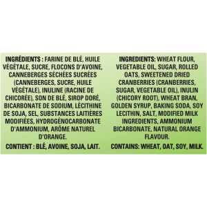 Each cookie is made with care, using a blend of wheat flour, vegetable oil, sugar, rolled oats, and sweetened dried cranberries. The addition of inulin from chicory root and wheat bran adds a touch of fiber to this delicious treat. Golden syrup and natural orange flavor give these cookies a unique and refreshing taste.