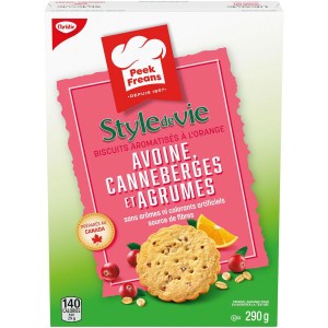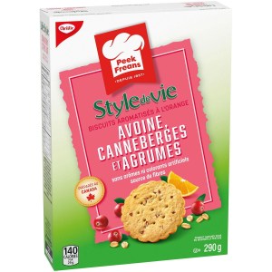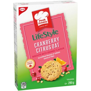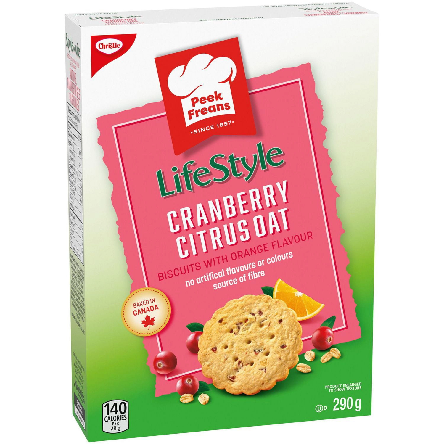 Indulge in the delightful taste of Christie Peek Freans Lifestyle Cranberry Citris Oat Cookies. Since 1857, Peek Freans has been known for offering high-quality biscuits loved by people worldwide. These oat cookies are part of the Peek Freans Lifestyle Selections better-for-you line-up.