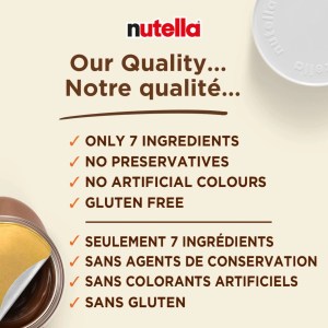 – Nutella is made with the highest quality raw materials, including premium hazelnuts and never made with GMO ingredients