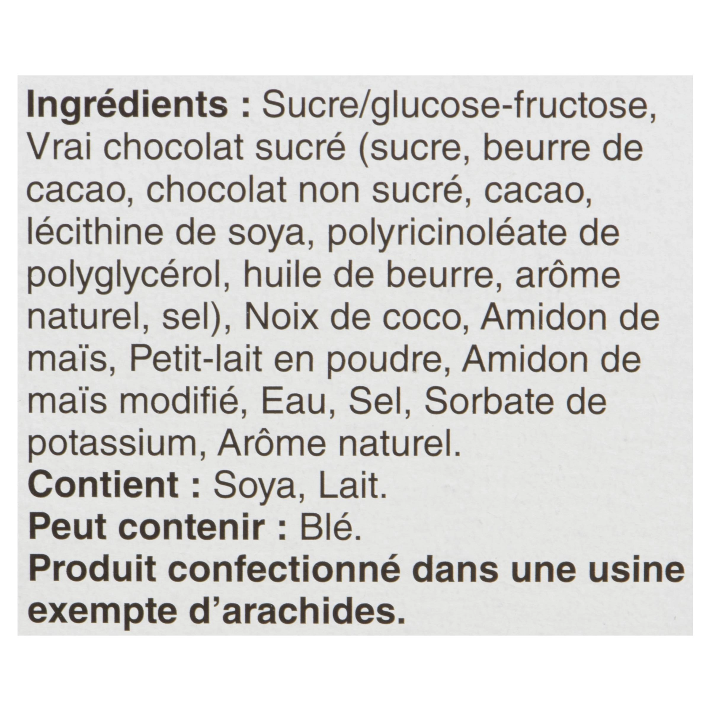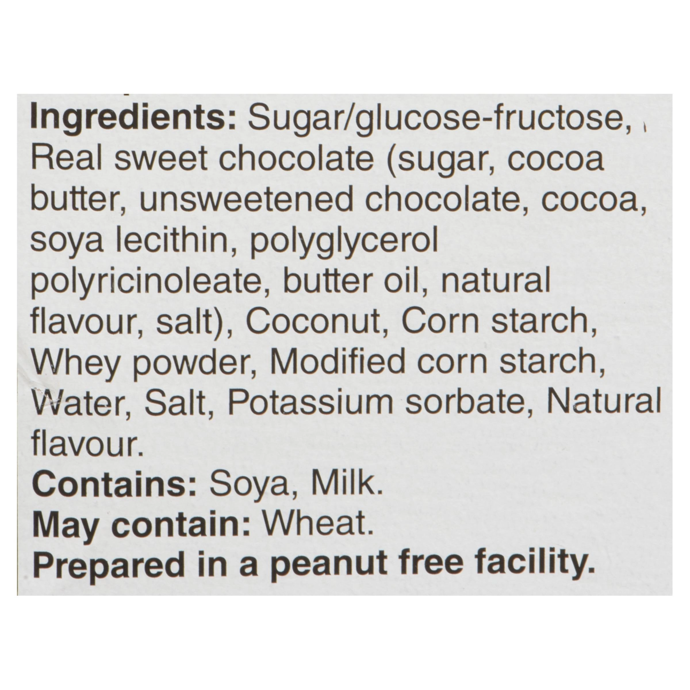 - Real sweet chocolate (sugar, cocoa butter, unsweetened chocolate, cocoa, soya lecithin, polyglycerol polyricinoleate, butter oil, natural flavor, salt)