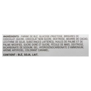 – Chocolate chips (sugar, unsweetened chocolate, dextrose, cocoa butter, soy lecithin, milk ingredients)