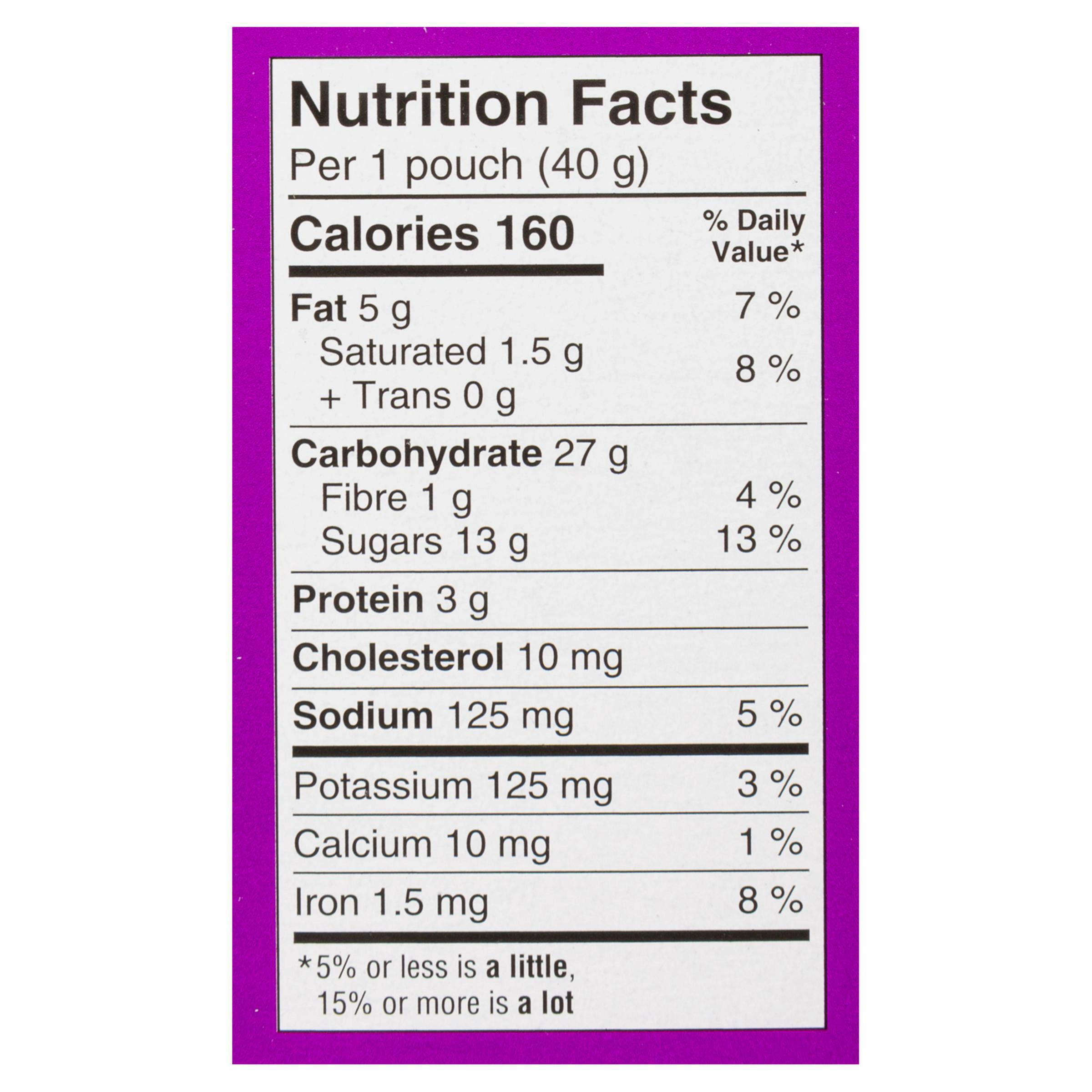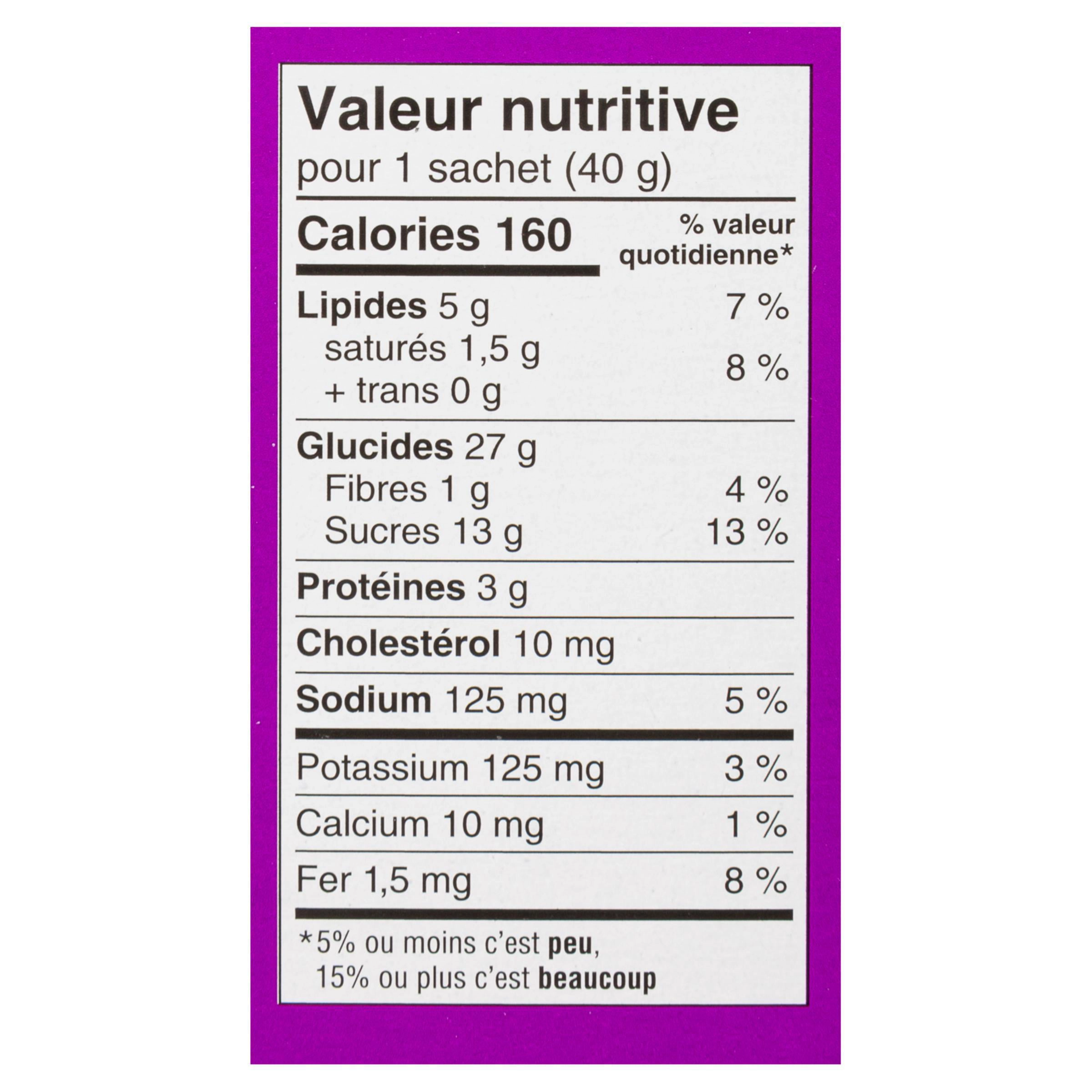 Wheat flour, Sugars (sugar/glucose-fructose, fancy molasses, raisin paste), Chocolate (sugars [sugar, dextrose], unsweetened chocolate), Liquid whole egg, Canola oil, Cocoa, Modified palm oil, Salt, Whey powder, Vegetable glycerin, Baking soda, Natural flavor, Soya lecithin
