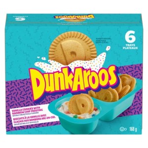 – DUNKAROOS: Your favorite snack from the 90s is back, featuring delicious vanilla cookies, vanilla frosting, and rainbow sprinkles