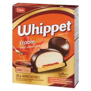 Indulge in the irresistible taste of Whippet Maple Cookies. These cookies are a delightful treat that combines the flavors of authentic Quebec Maple Syrup and real chocolate. With a soft cookie base, fluffy marshmallow, and a sweet maple center, each bite is a burst of deliciousness. Made with real chocolate and Quebec Maple Syrup, these cookies are free from artificial colors and flavors, ensuring a natural and satisfying snack.