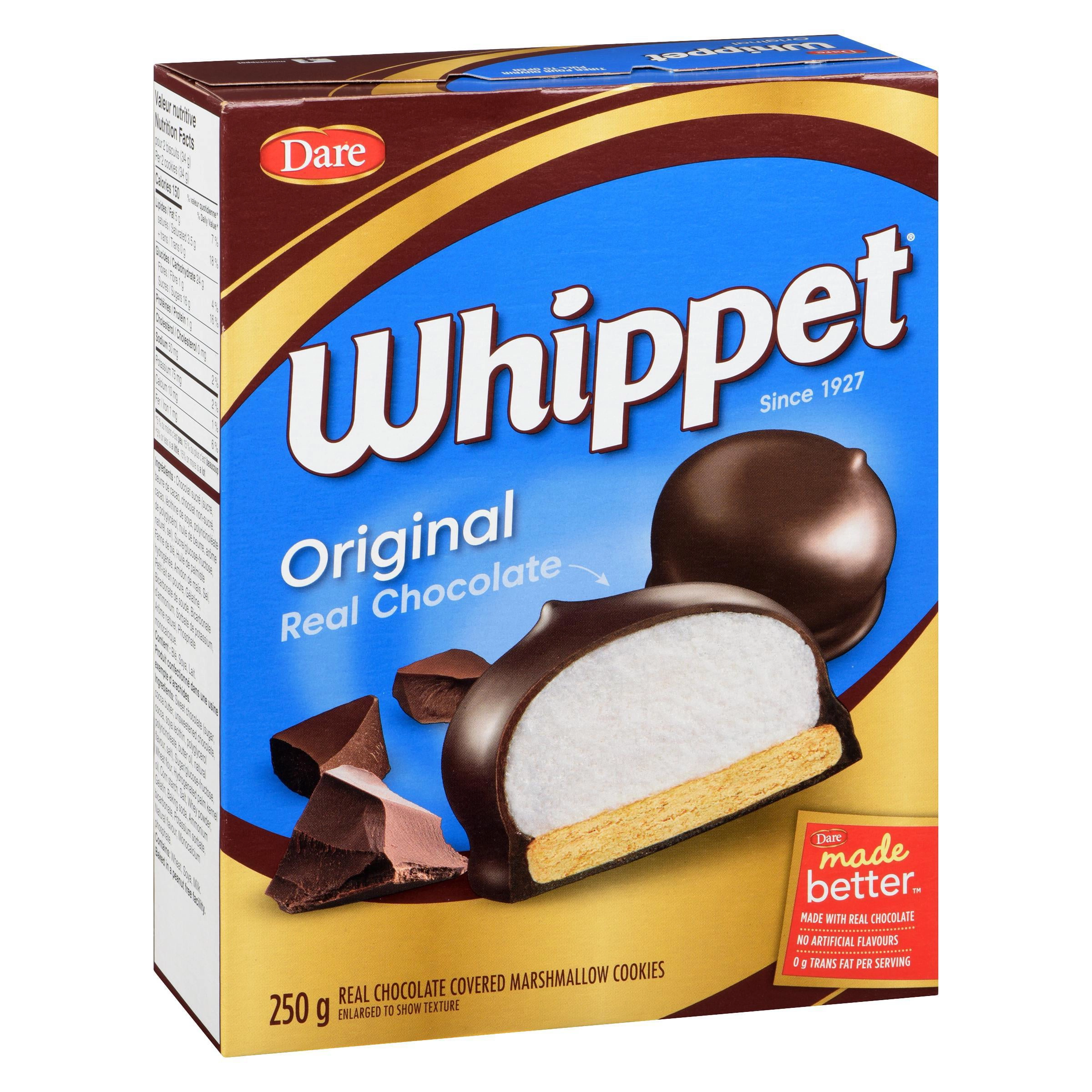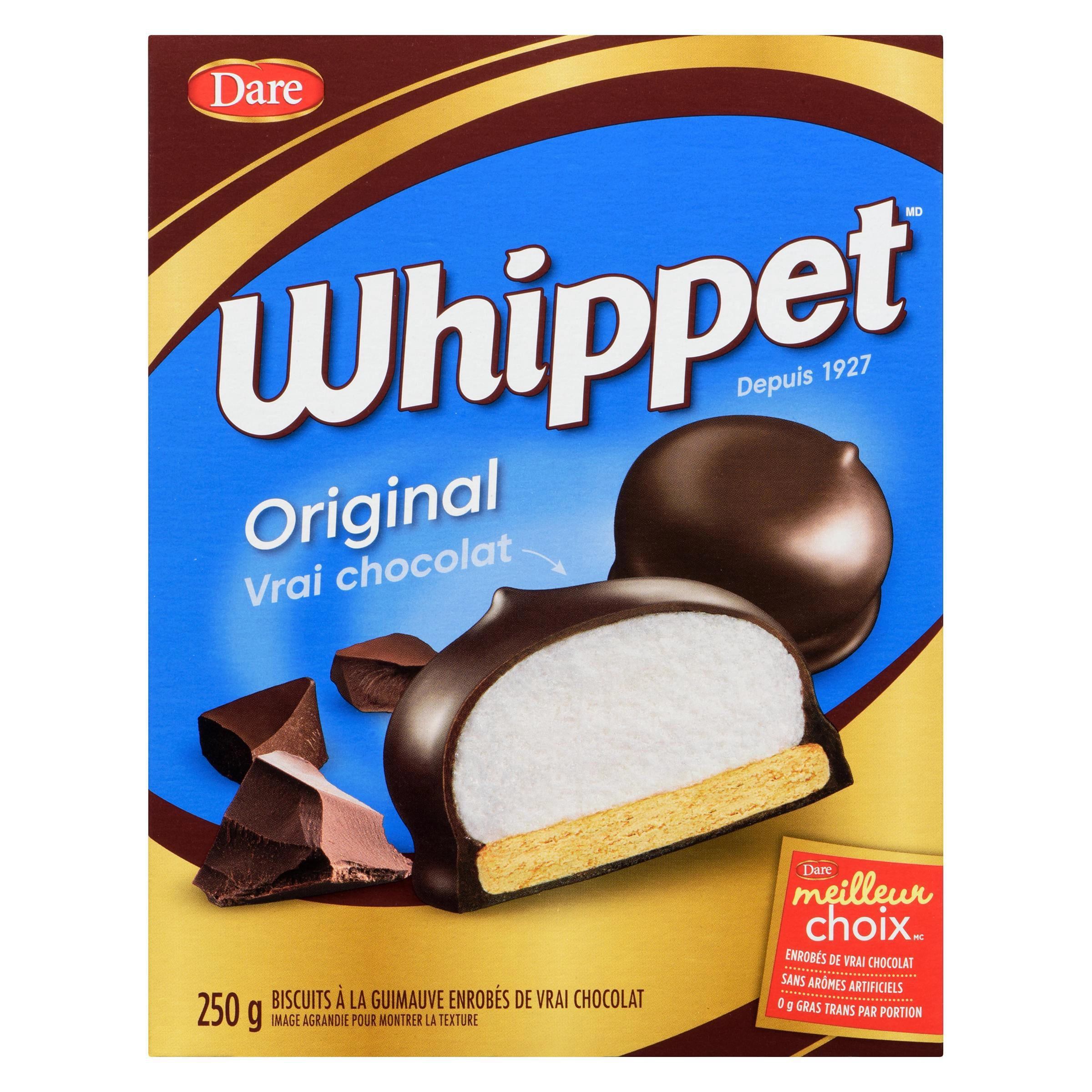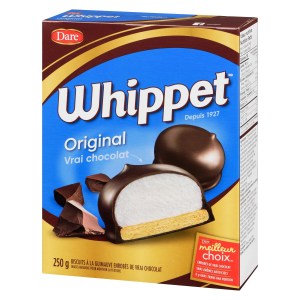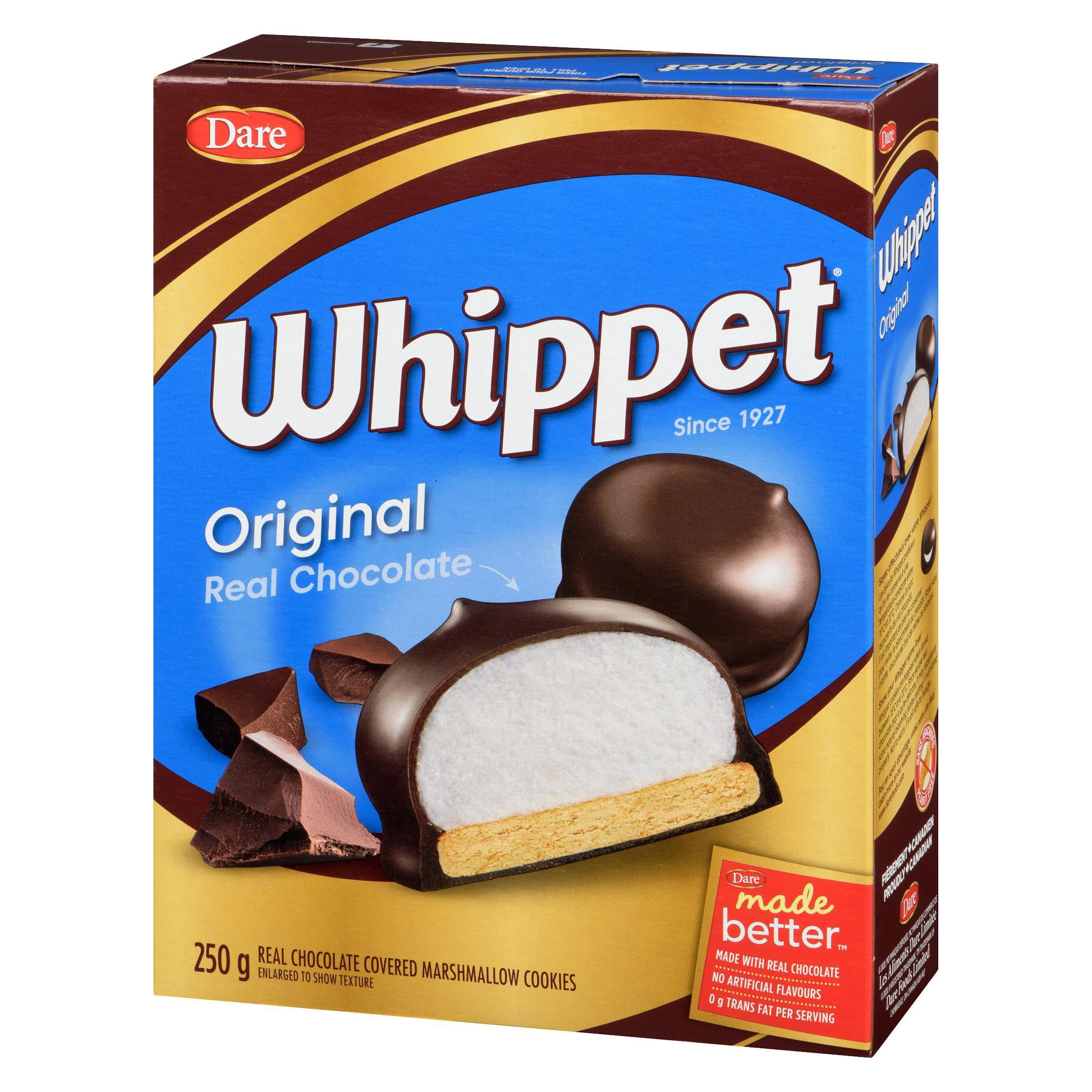 Indulge in the classic Quebec treat with Whippet Original Chocolate Covered Marshmallow Cookies. These delightful cookies feature a chewy marshmallow center, a soft cookie base, and a rich coating of real chocolate. Perfect for satisfying your sweet tooth after dinner or anytime you crave a delicious treat. Made with real chocolate and no artificial flavors or colors, these cookies are a guilt-free indulgence. Plus, they are peanut-free, making them a safe and tasty option for those with peanut allergies.