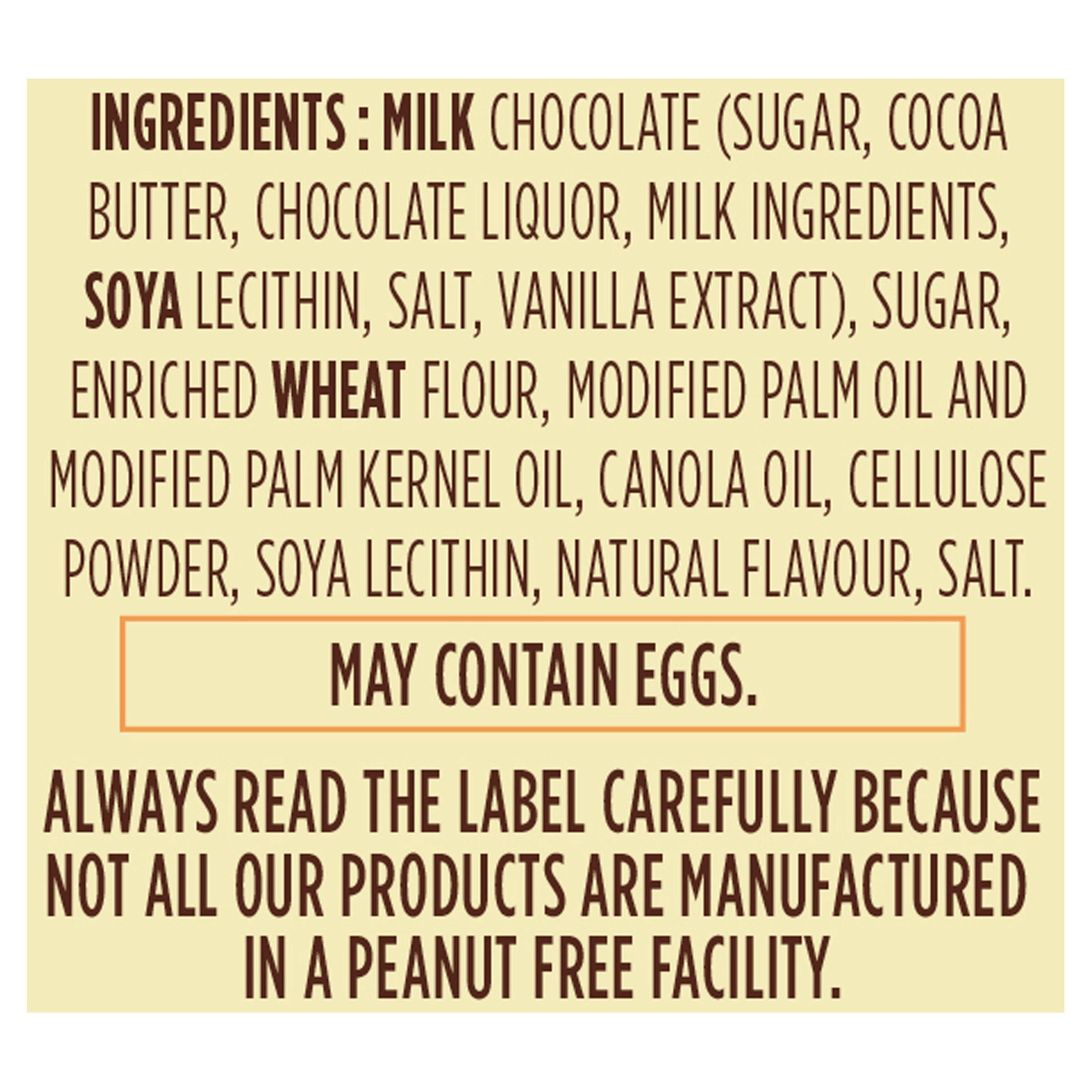 - Delicious vanilla wafer cookies coated with real milk chocolate
