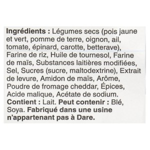 – Dried vegetables (yellow and green pea, potato, onion, garlic, tomato, spinach, carrot, beet)