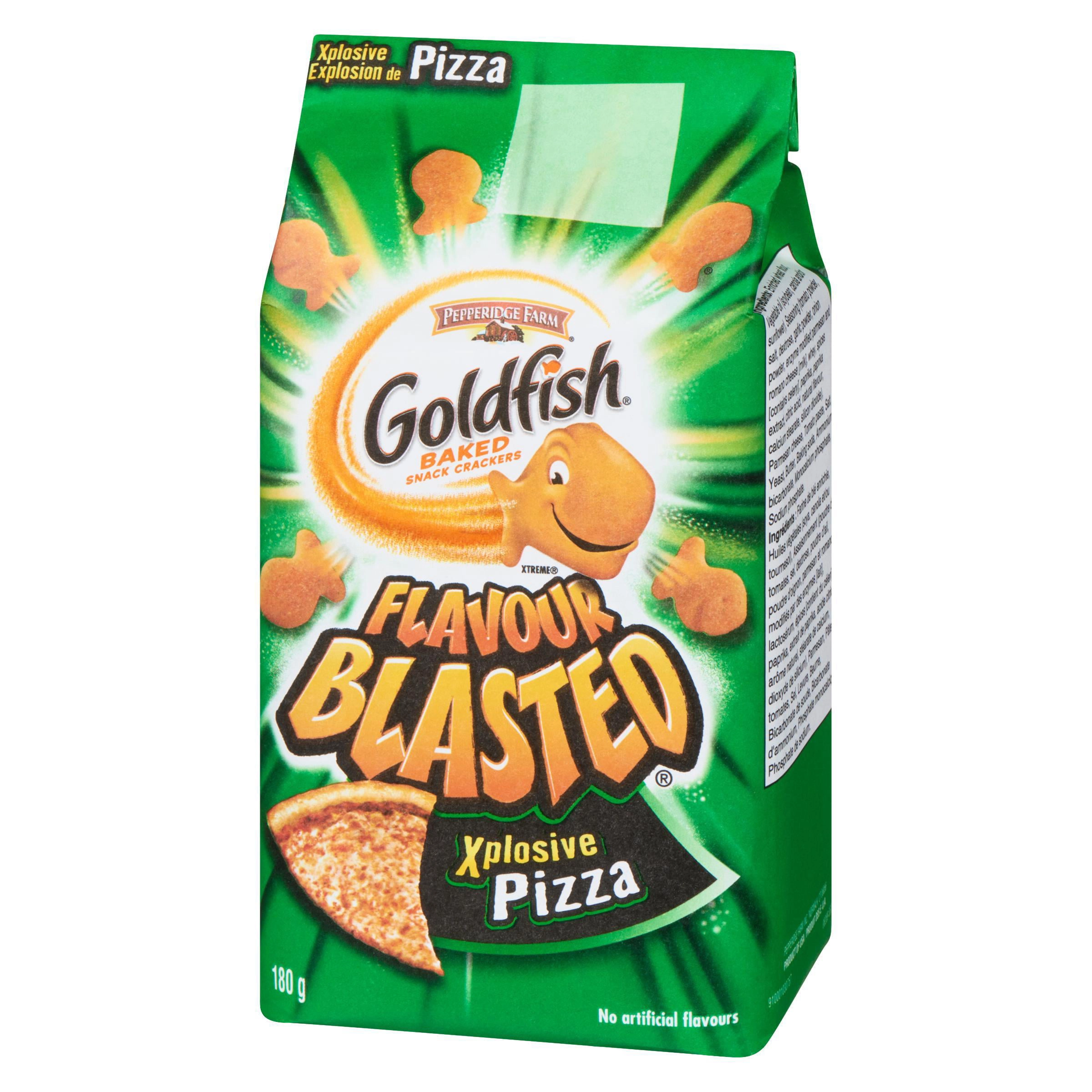 Indulge in the explosive flavor of Goldfish Flavour Blasted Explosive Pizza Crackers. These tiny crackers are packed with the delicious taste of pizza and are sure to satisfy your cravings. Made with no artificial flavors, these crackers are always baked to perfection, ensuring a crispy and flavorful bite every time.