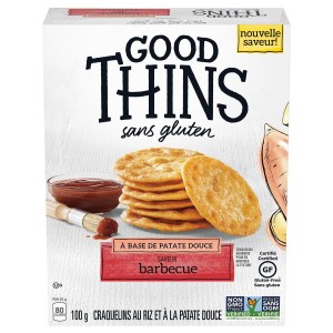 - One 100 g box of Good Thins Sweet Potato Barbecue flavored crackers