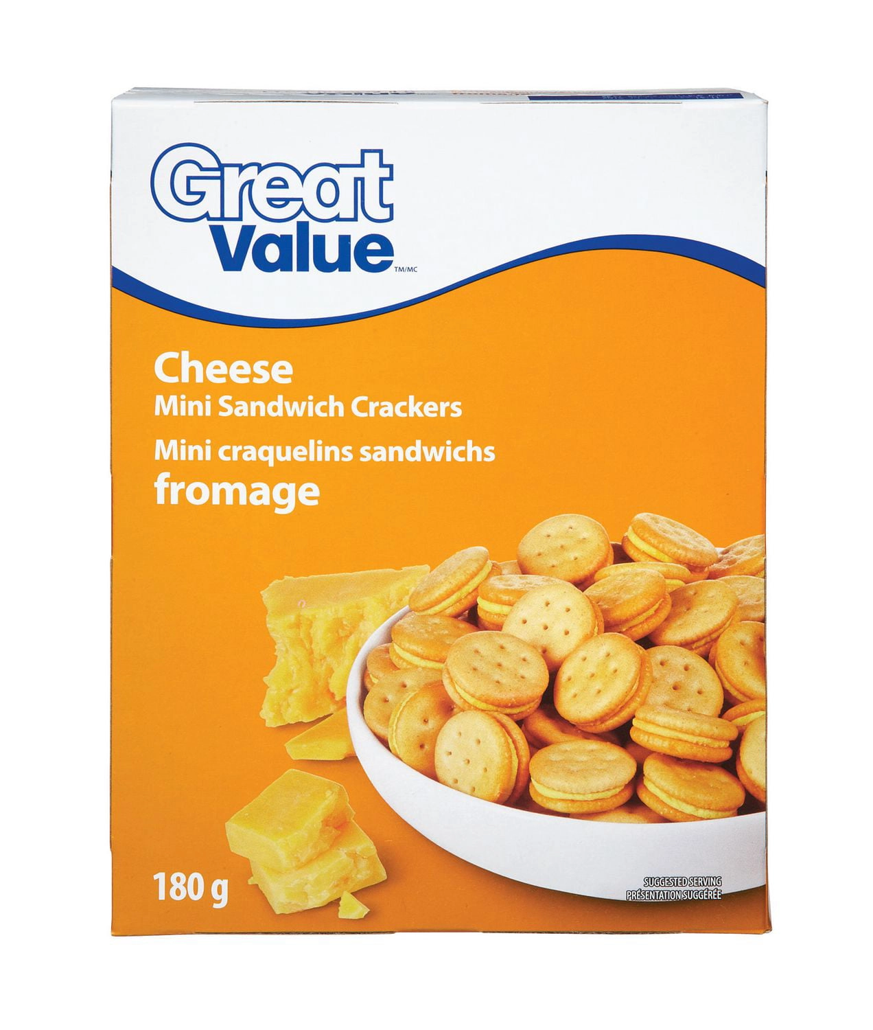 Enjoy the deliciousness of Great Value Cheese Mini Sandwich Crackers wherever you go. Grab a pack today and satisfy your cravings with this tasty and convenient snack.