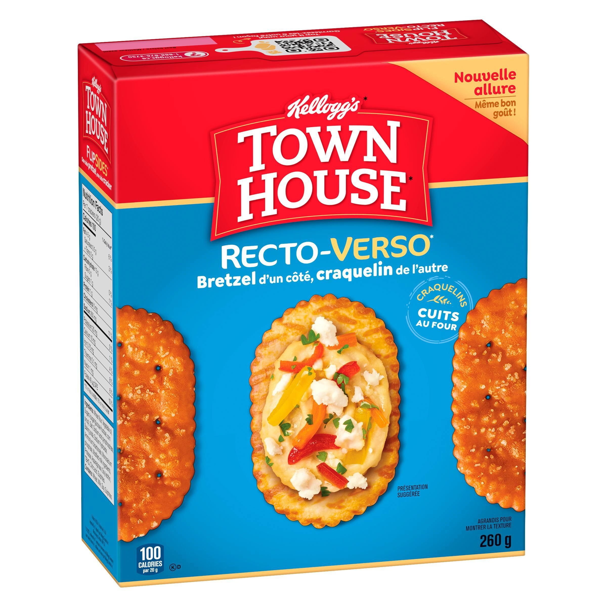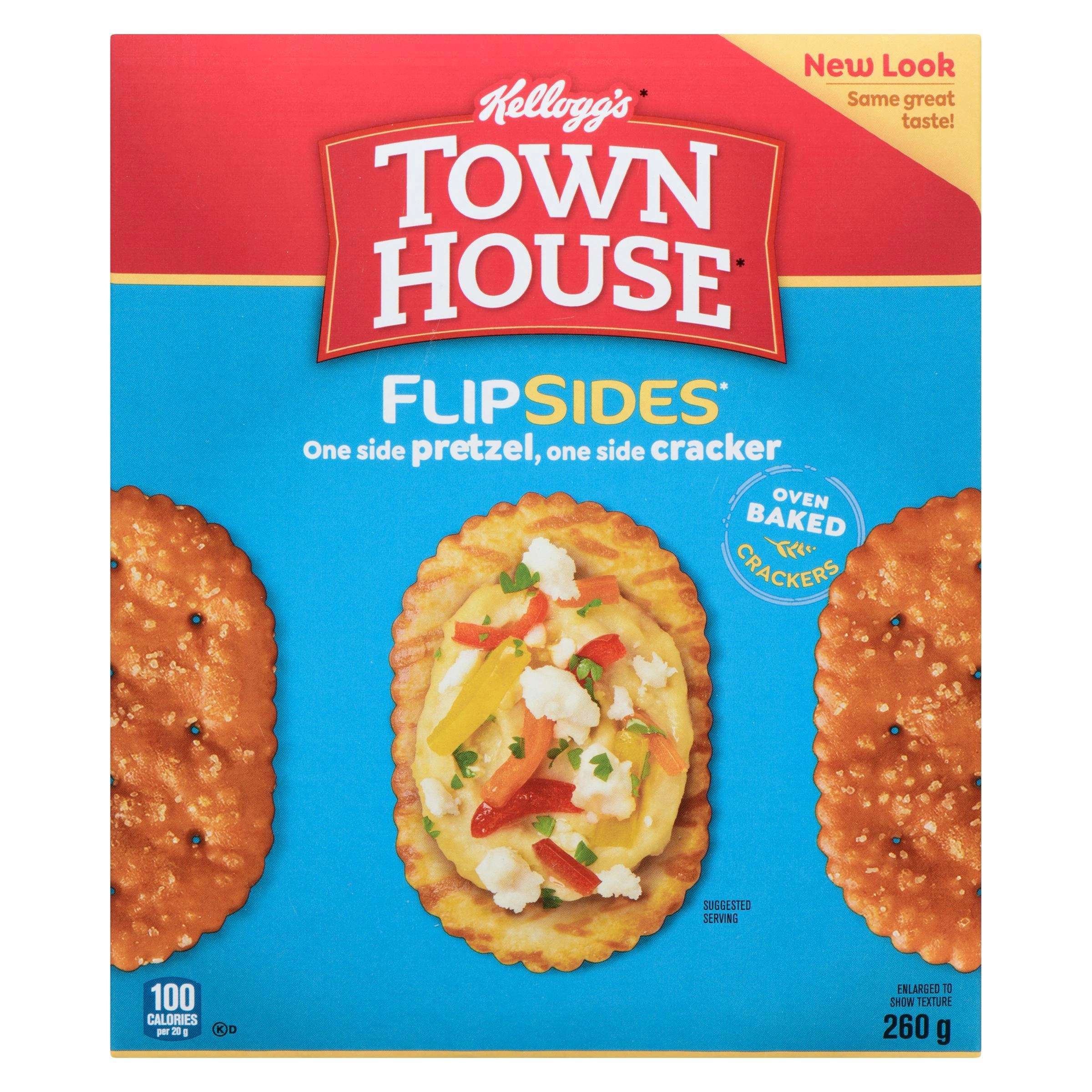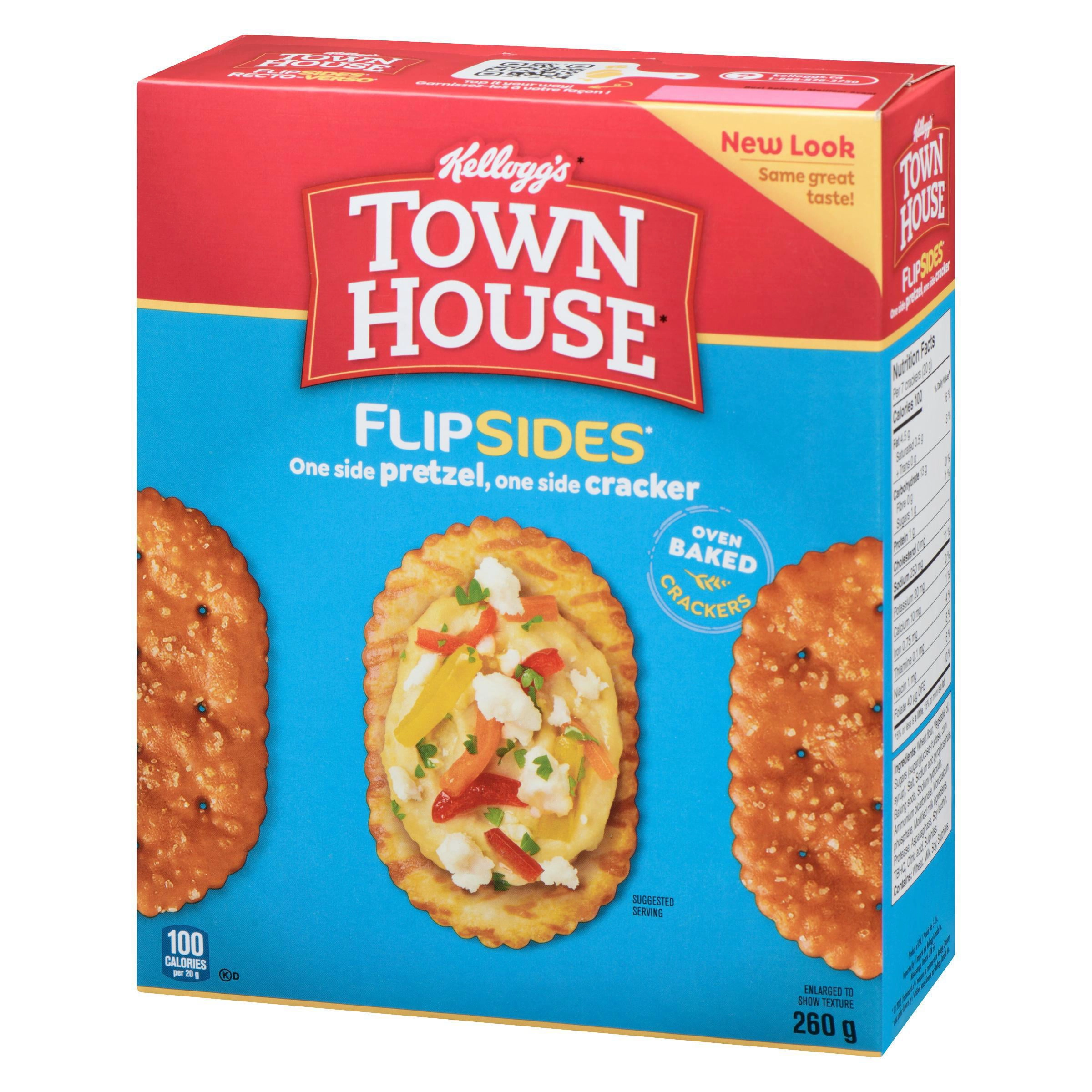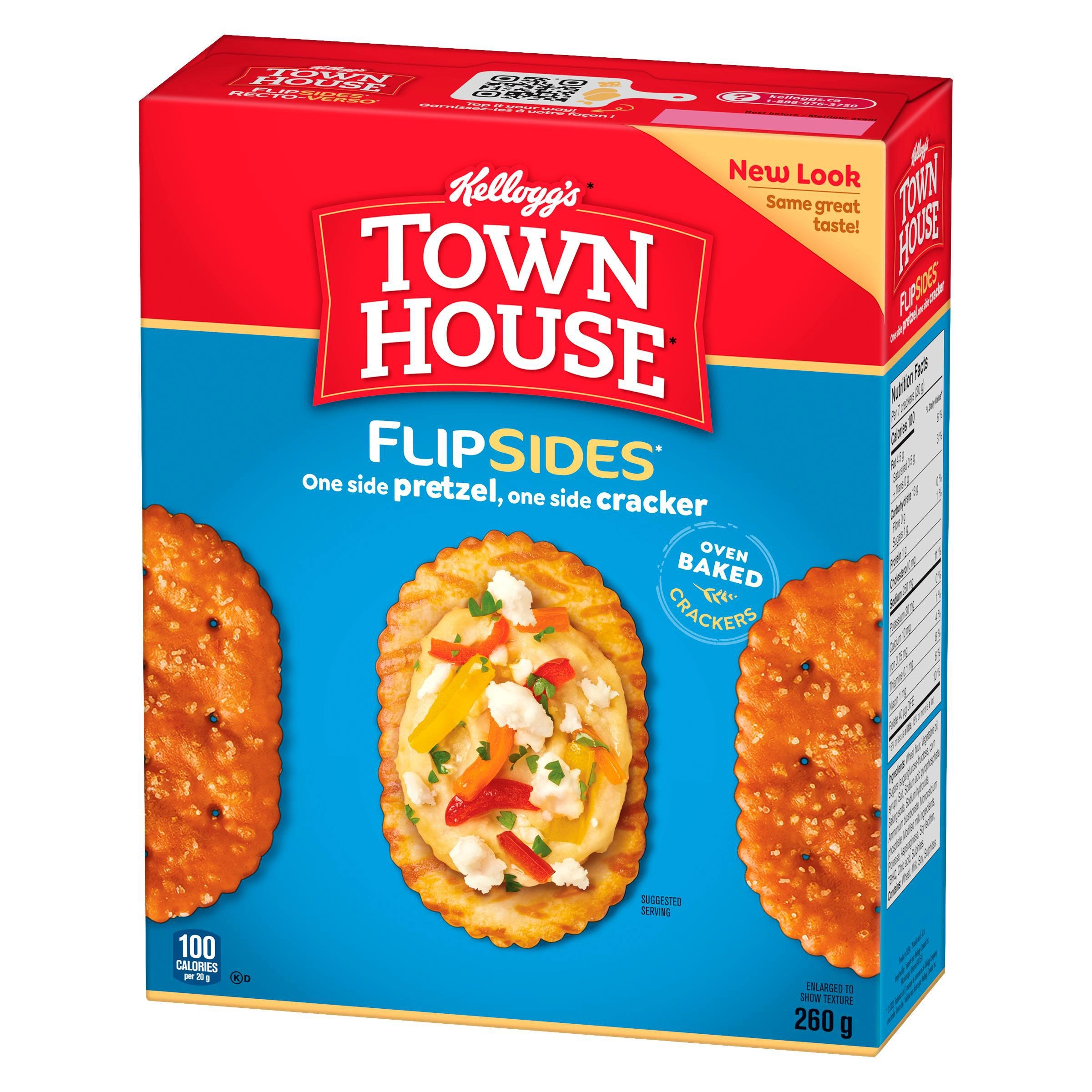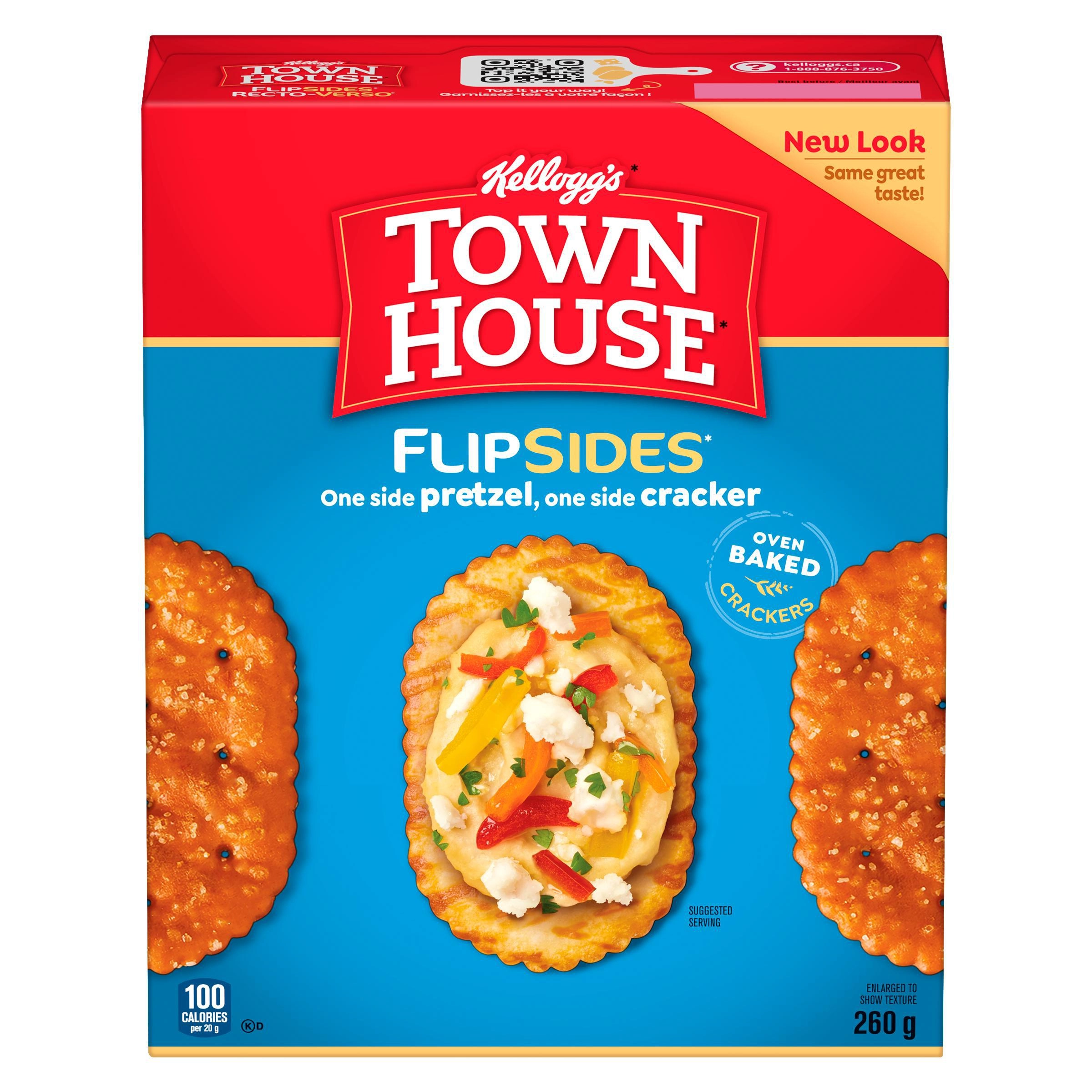Introducing the new Keebler Kellogg’s Town House Flipsides Original Cracker! Experience the classic baked pretzel taste in a thin, crispy cracker that is perfectly seasoned with salt. With the unique combination of a pretzel on one side and a cracker on the other, these Flipsides are sure to satisfy your cravings.