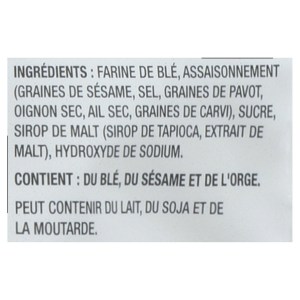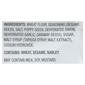 - Seasoning (sesame seeds, salt, poppy seeds, dehydrated onion, dehydrated garlic, caraway seeds)