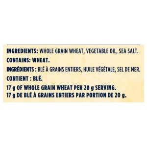 - Made with 3 simple ingredients: whole grain wheat, vegetable oil, and sea salt