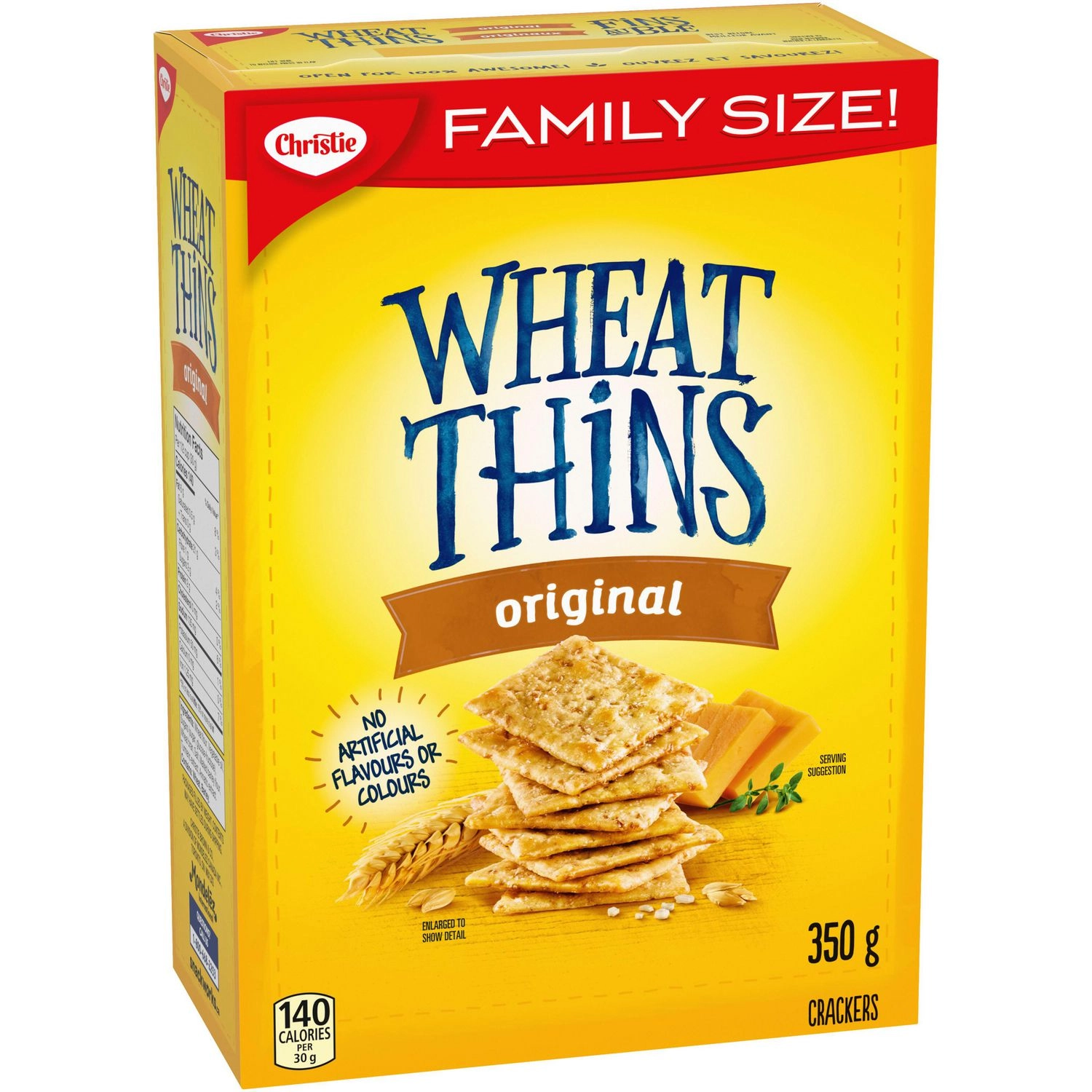 Step 2: Deliciously crunchy and baked with the goodness of wheat, Wheat Thins Original Family Size Crackers are perfect for snacking. No artificial colors or flavors, low in saturated fat, and cholesterol-free.