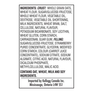 - Filling: sugar, corn syrup, strawberry puree concentrate, vegetable glycerin, concentrated carrot juice (for colour), modified corn starch, natural flavour, modified cellulose, malic acid, citric acid, sodium alginate, sodium citrate, dicalcium phosphate