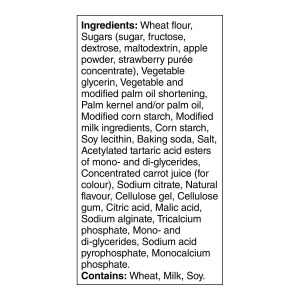 - Sugars (sugar, fructose, dextrose, maltodextrin, apple powder, strawberry puree concentrate)
