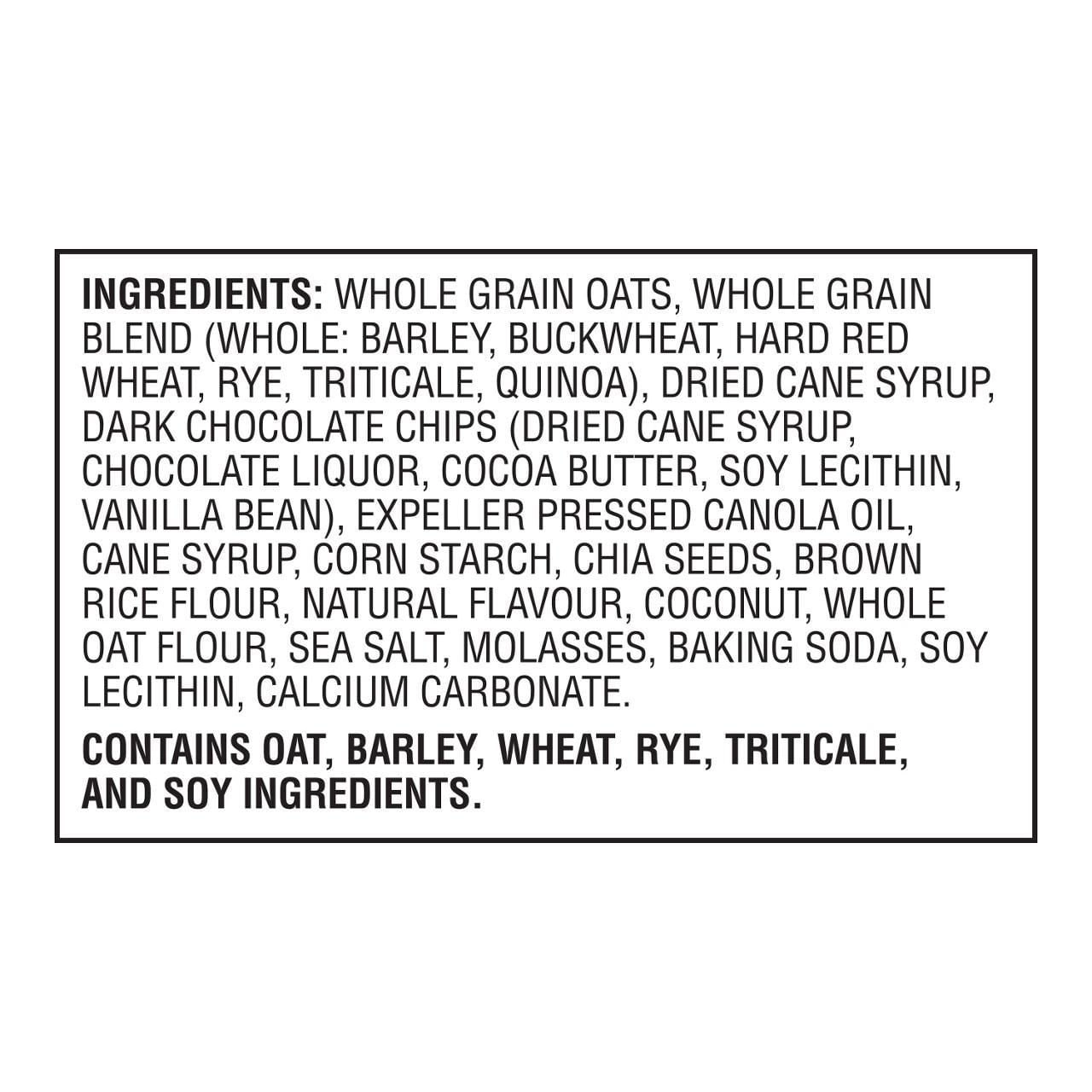- Wholesome blend of whole grain oats, dark chocolate chips, and chia seeds