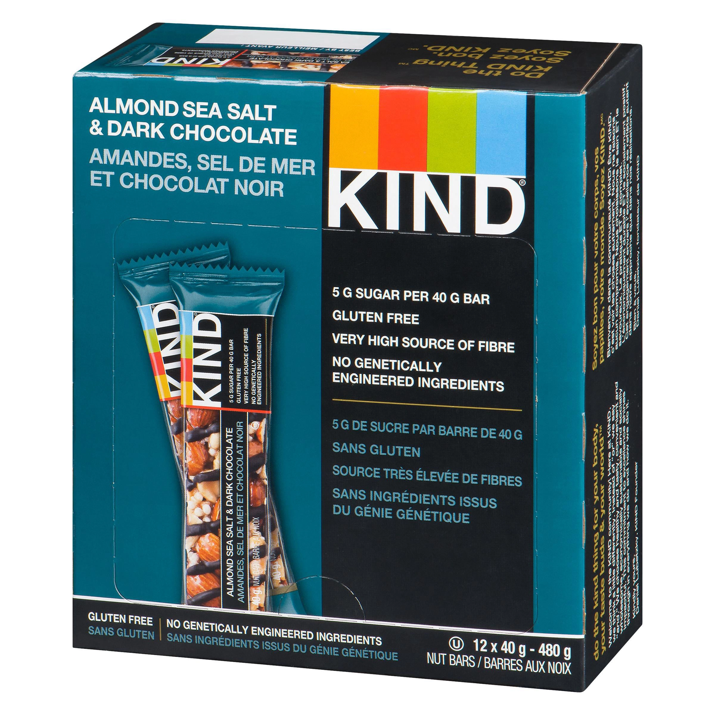 Experience the irresistible combination of sweet and salty with KIND Almond Sea Salt & Dark Chocolate Bars. These bars are the perfect pick-me-up when you need a nutrient-dense snack on the go. Each bar is packed with crunchy almonds and peanuts, drizzled in rich dark chocolate, and finished with a touch of sea salt.