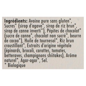 Our MadeGood Chocolate Chip Granola Bars are made with pure gluten-free oats and sweetened with a blend of agave syrup, brown rice syrup, and invert cane syrup. The rich and creamy chocolate chips are made from cane sugar, unsweetened chocolate, and cocoa butter. We use sunflower oil for a light and crispy texture, and brown rice crisp for an extra crunch.