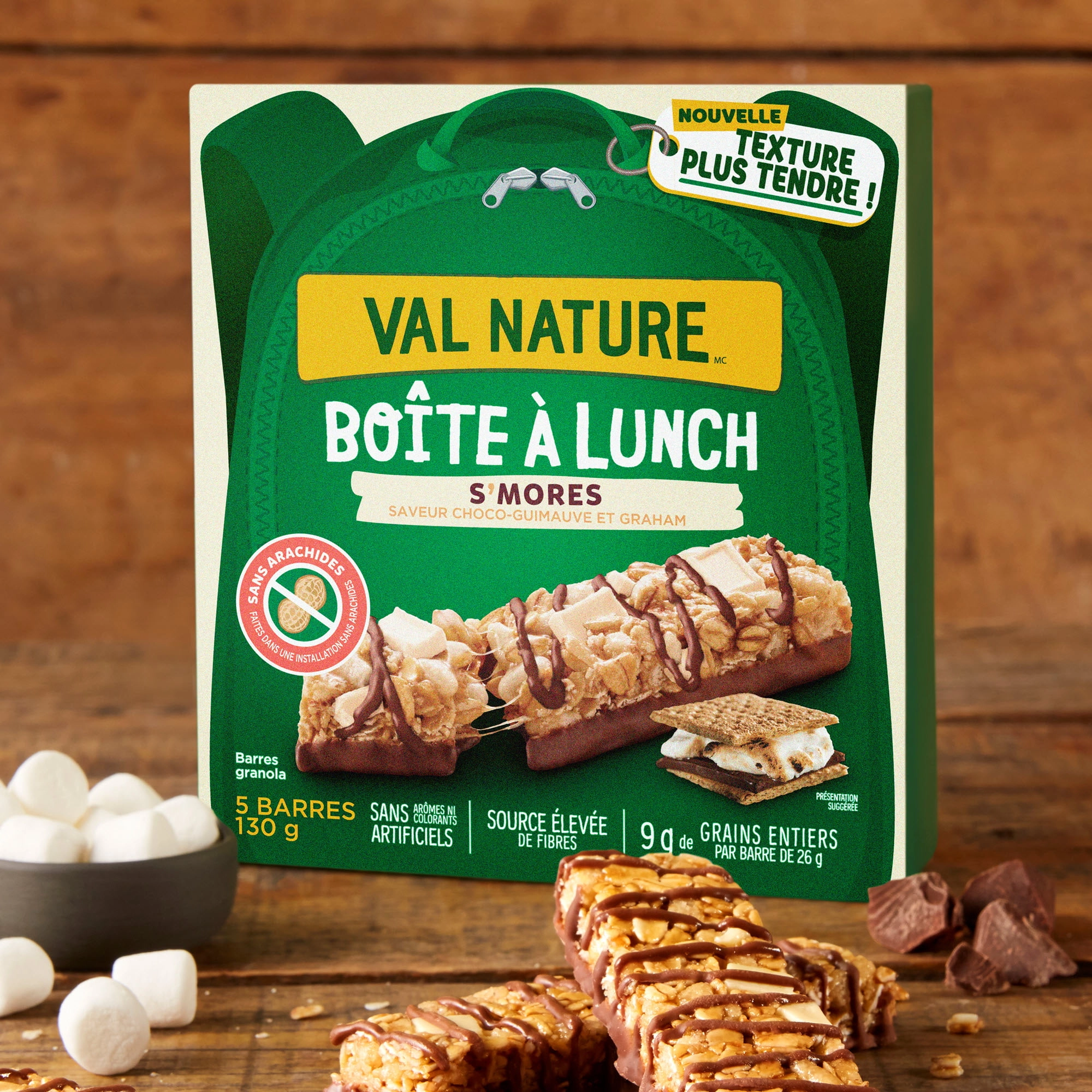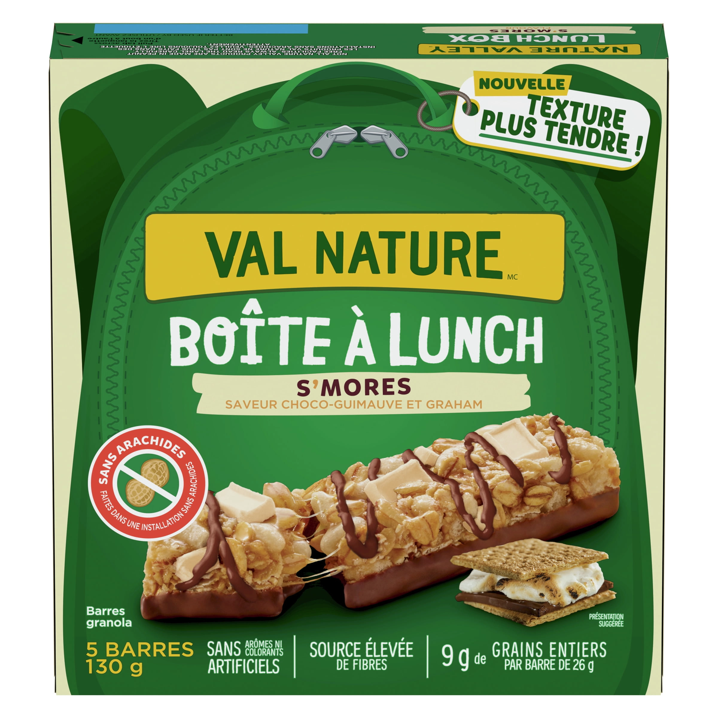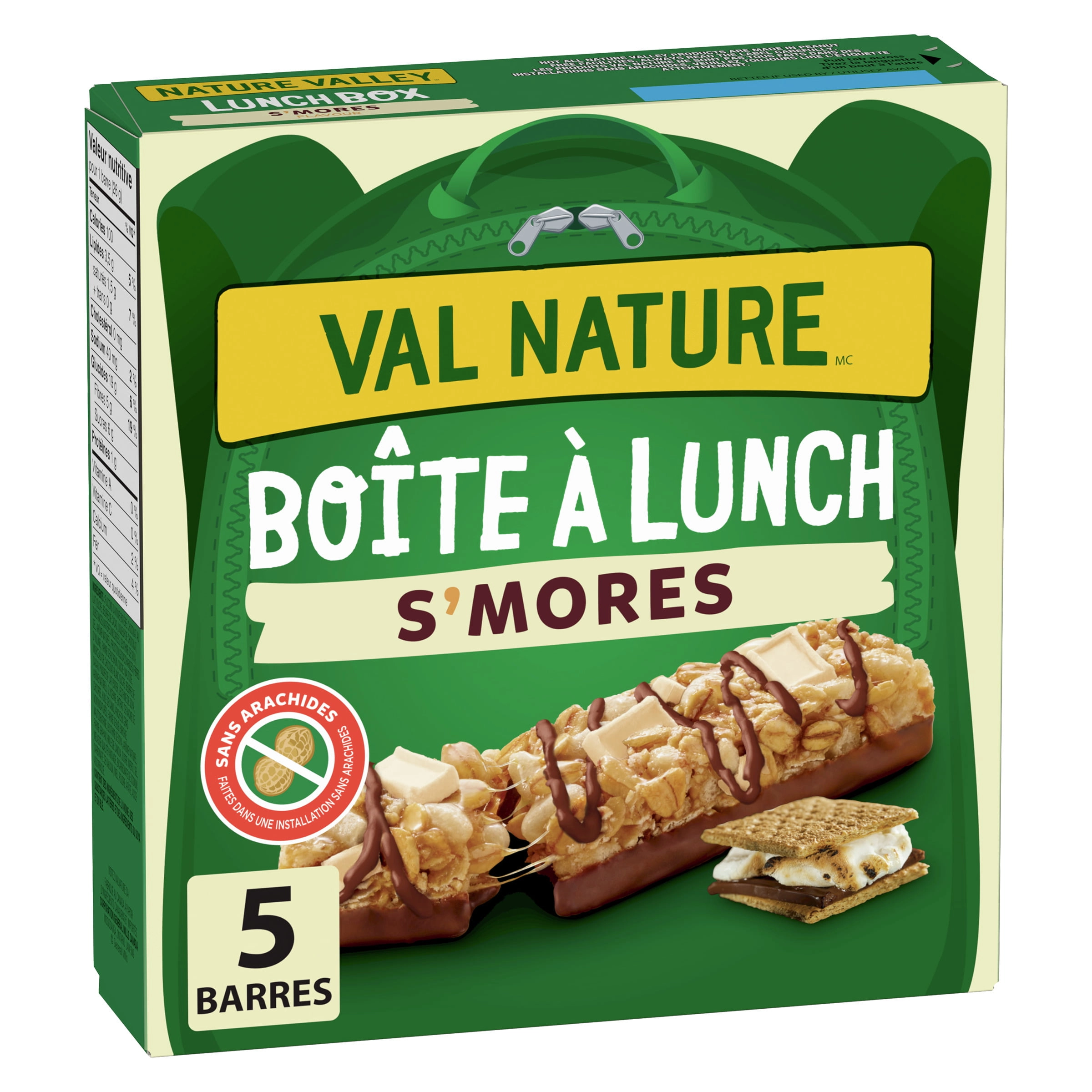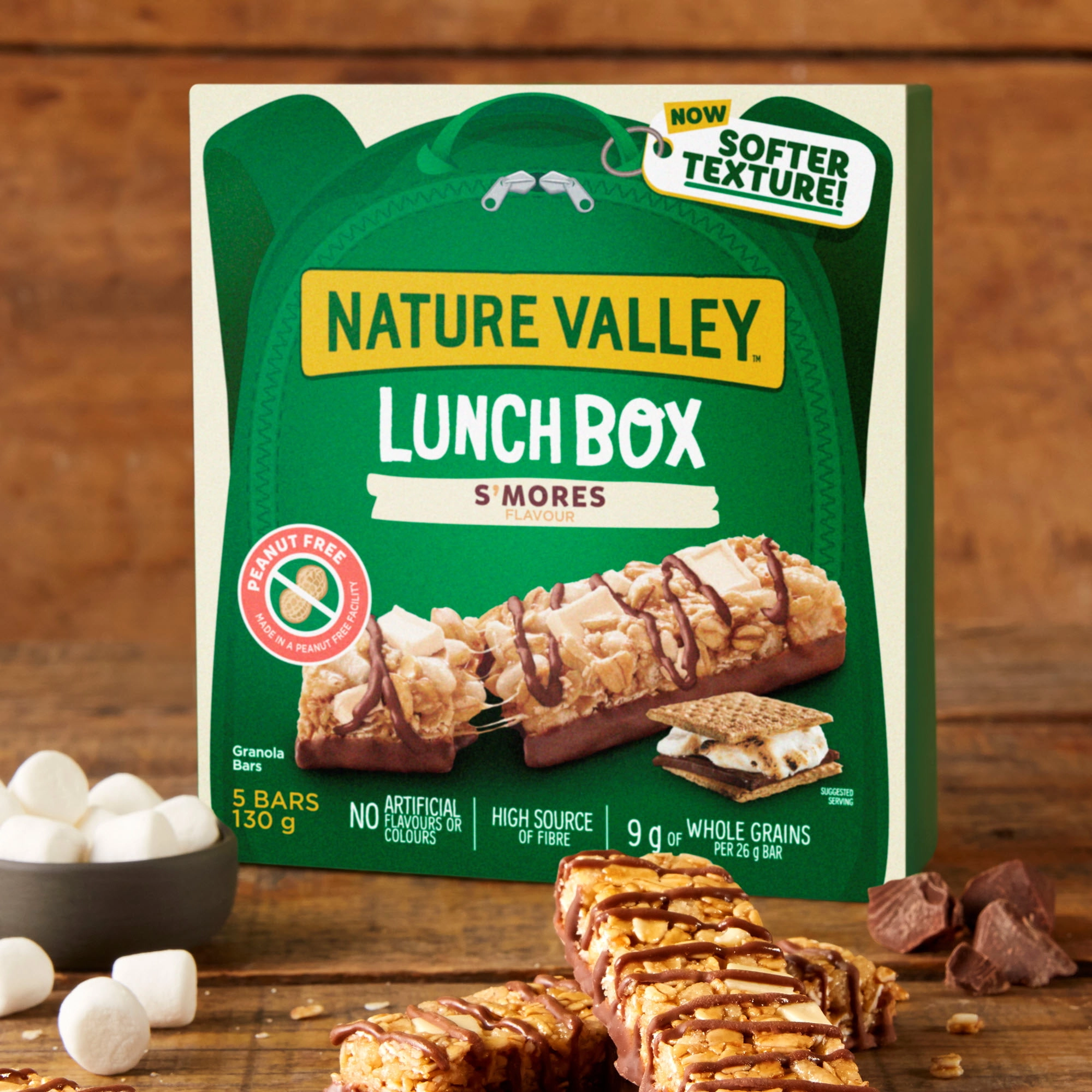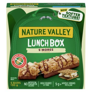 - CHEWY GRANOLA BARS: Nature Valley S’mores Lunchbox Granola Bars are peanut-free and packed with fiber and whole grains, making them the perfect school-safe snack for your little one.