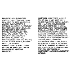 Contains: Peanut, almond, cashew, milk, soy, oat, barley. May contain macadamia nut and pecan ingredients.