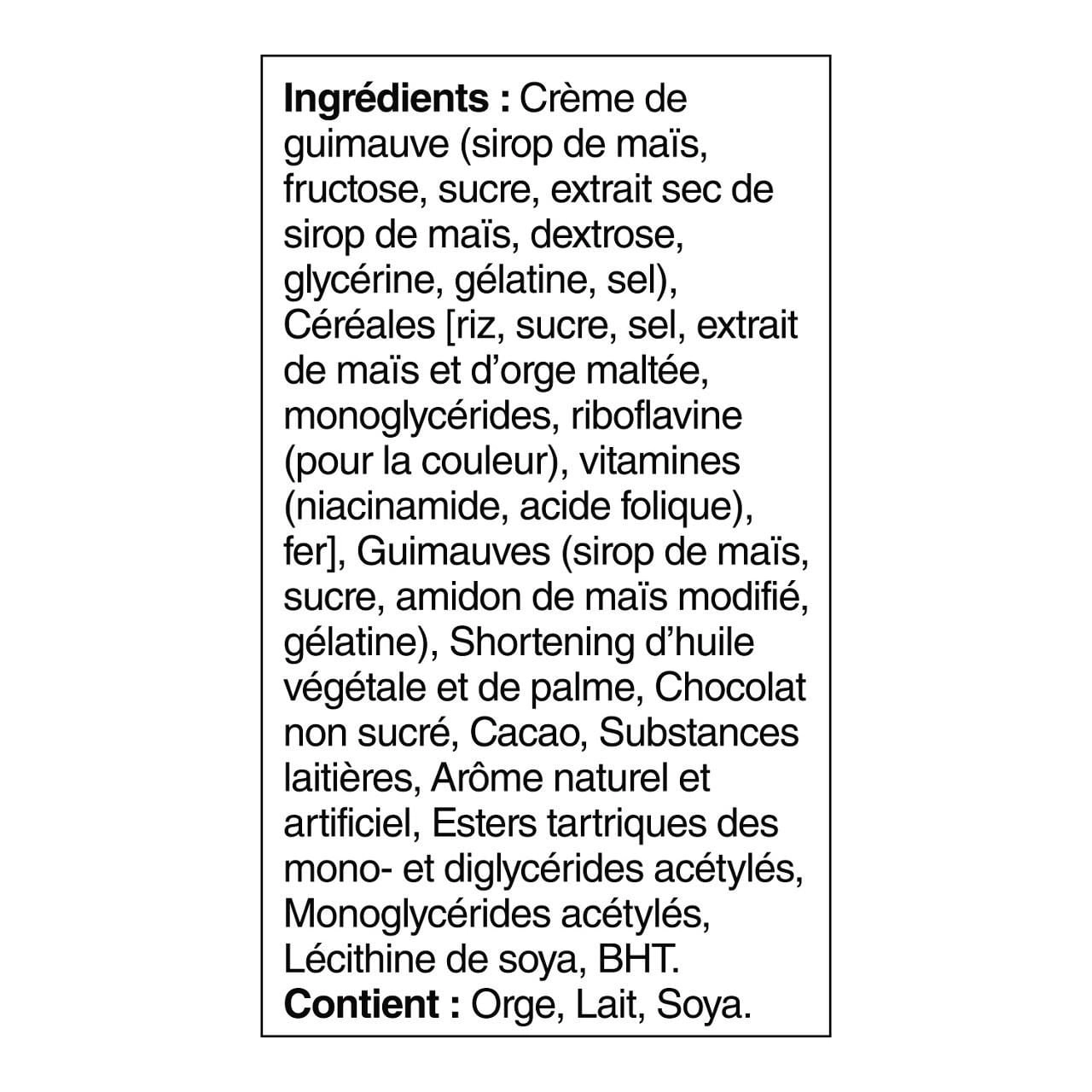 - Marshmallows (corn syrup, sugar, modified corn starch, gelatin)
