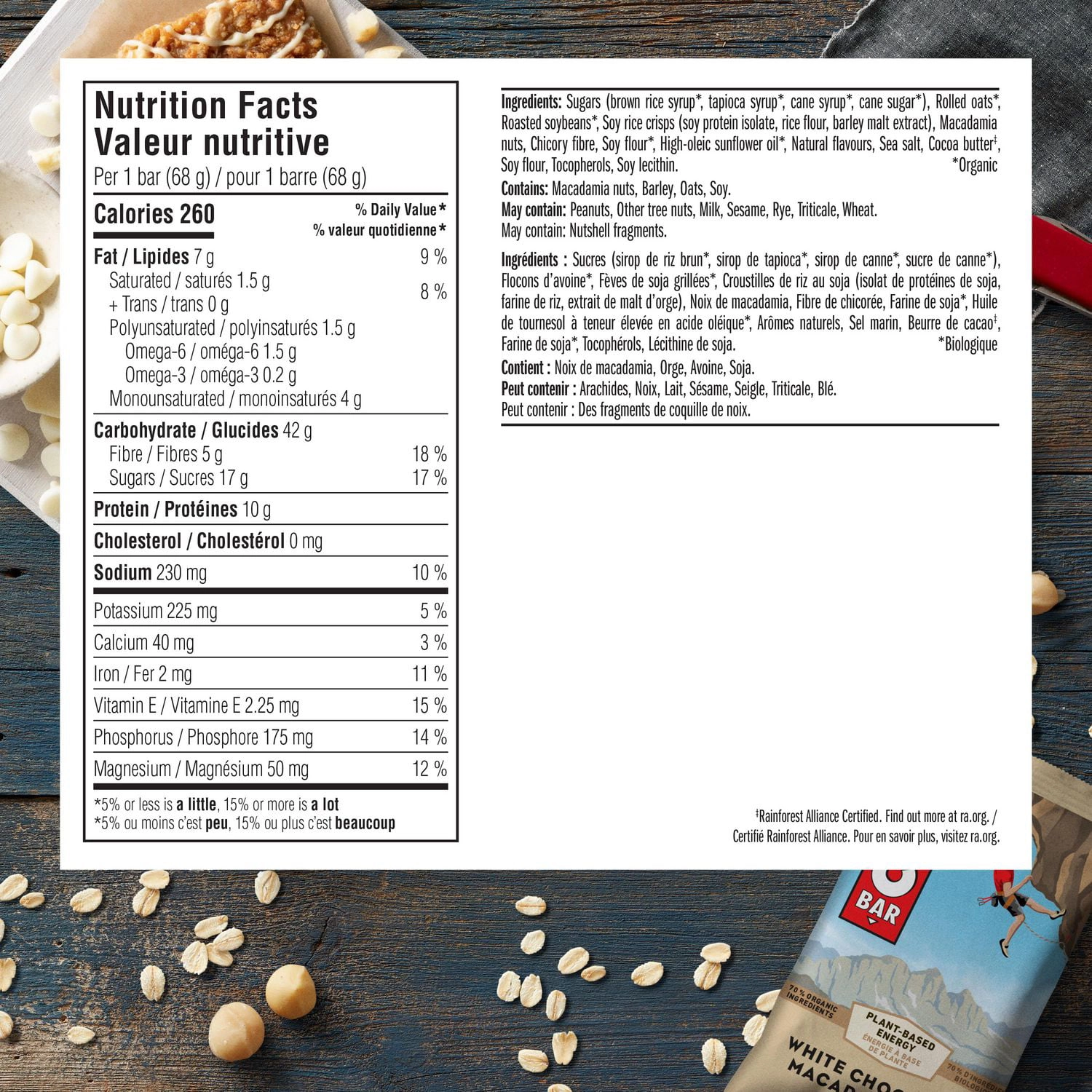 Experience the first bar that Clif Bar ever made, and discover why it’s still everything they’re about. Made with wholesome, organic ingredients, this energy bar provides performance nutrition and great taste. Whether you’re on a 250 km bike ride or exploring a new trail, Clif Bar White Chocolate Macadamia Nut Energy Bars are built to sustain your adventure.