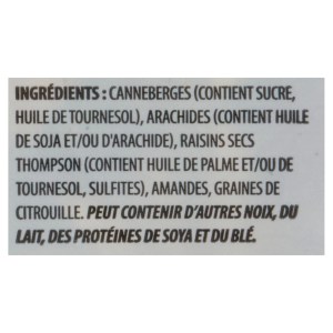 – Cranberries (contains sugar, sunflower oil)