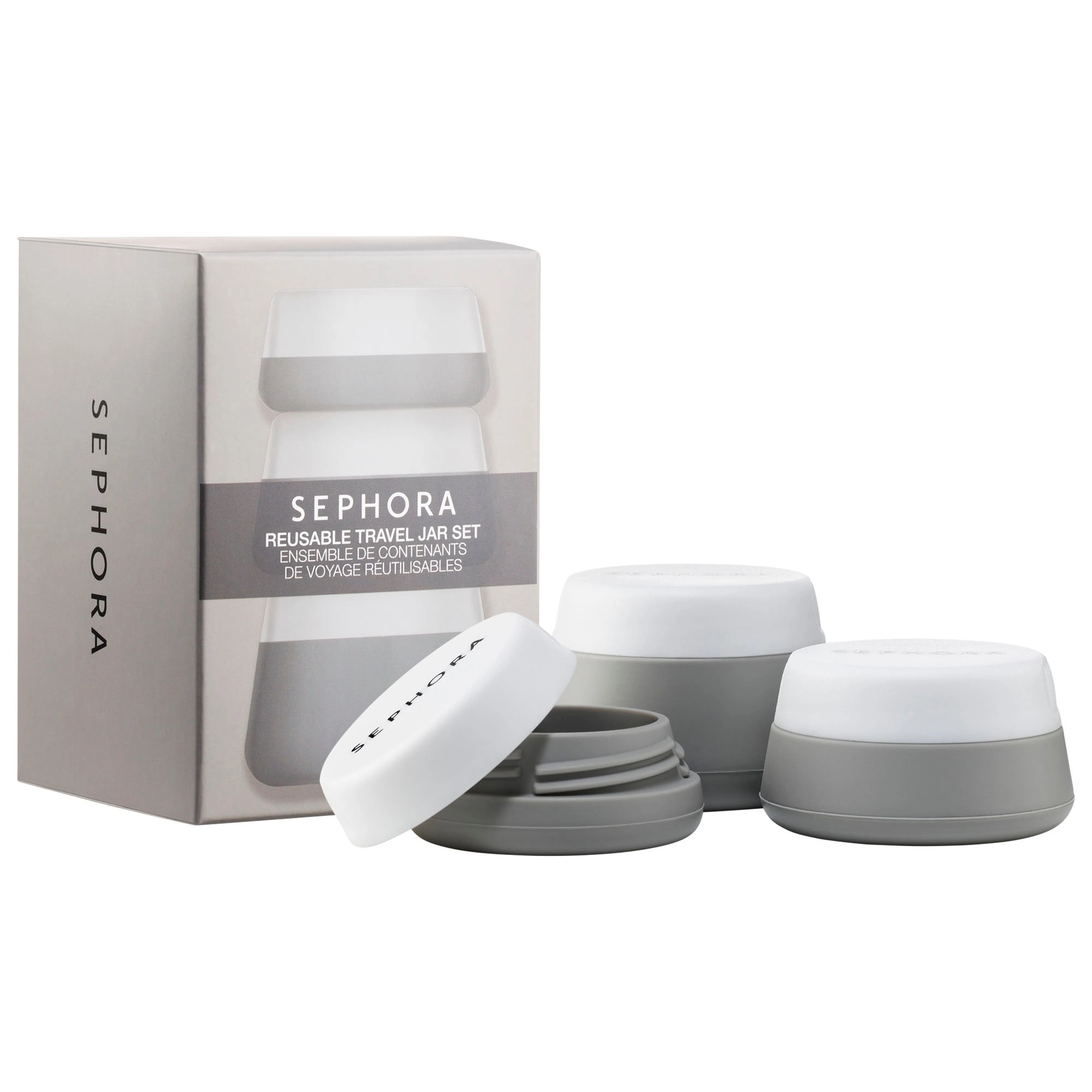 Introducing the SEPHORA COLLECTION Reusable Travel Jar Set, the perfect solution for storing your favorite beauty products while on the go. This three-piece set includes 10mL, 20mL, and 30mL silicone jars, all TSA-approved for hassle-free travel.